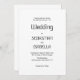 Um convite de casamento preto e branco com uma design limpa e minimalista e um estilo de fonte diferente dos temas de casamento habituais. Simples e fácil de personalizar para seu dia especial. Totalmente personalizável selecionando Personalizar este modelo
