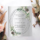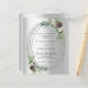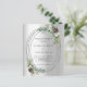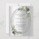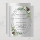 Para um casamento no inverno. Um fundo com aspecto fino de prata decorado com cones, bagas brancas e verde. Um falso quadro prateado. Personalize e adicione seus nomes e detalhes. 1 folha = 1 convite impresso de borda a borda.