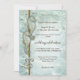 Convite de casamento com dois elegantes cavalos marinhos com corda e âncora estilizada sobre fundo de água espumante. Bonito para um casamento náutico, aquário ou destino. Este convite tem um cartão RSVP e faz parte de uma coleção.