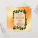 Queda de convite com uma videira sobreplantada. Coloque os primeiros nomes do casal de um lado com toda a informação do casamento e saudação no reverso. Por favor, verifique triplicamente todo o seu texto.