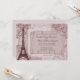 Convide convidados para o seu próximo casamento com um Convite Parisiense de Casamento Rosa. O design de convite apresenta a Torre Eiffel, um pergaminho onde você pode detalhar as informações do seu chá de panela enfeitiçado com embelezamentos de damasco e selo postal. Material adicional disponível com esta design também. Precisa de ajuda para a personalização? Peço-lhe que me contacte e que elabore a redação e os pormenores para que este design seja ajustado para vossa satisfação.