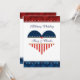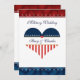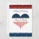 Uma bela bandeira patriótica americana coração militar personalizada convite de casamento, em cores patrióticas, vermelho, branco e azul! A cor da fonte é azul de marinho. Este modelo de convite está pronto para você personalizar seus detalhes do dia de casamento nas áreas de modelo. A frente do convite apresenta um coração patriótico americano com estrelas e listras, em cores americanas. No topo do convite lê-se 'Casamento Militar' e o meio do coração tem uma área modelo pronta para você adicionar os nomes da noiva e do noivo. Se você quiser alterar o tamanho da fonte ou as cores, posicionar o texto ou reorganizar qualquer coisa simplesmente clique em 'personalizar' e todas essas opções estarão disponíveis para você! Visite nossa loja outros estilos e itens patrióticos correspondentes, como cartões de colocação de recepção, cartões de número de mesa, cartões de resposta, selos postais, ornamentos militares e favores de casamento, e muito mais.