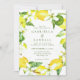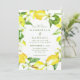 Uma camada aquosa de limões, folhas e flores de limão enfeita este bonito convite de casamento com o lado inverso coordenado num verde vibrante. Personalize facilmente com todos os seus detalhes importantes.