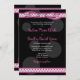O texto deste convite de casamento para bolinhas cor-de-rosa e pretas é perfeitamente personalizável. Para alterar o texto, basta clicar na opção personalizar. Parece bom quando a cor da fonte é branca também e você pode mudar isso usando a opção personalizar. Este convite para bolinhas cor-de-rosa e preta é atualmente personalizado como convite para o casamento, mas também funcionaria bem para uma variedade de outras ocasiões especiais. NOTA: este é um design impresso plano sem nenhum embelezamento em relevo ou em 3D. Isto é parte de um conjunto de papelaria temático.