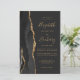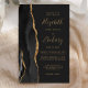 A borda esquerda deste elegante convite de casamento moderno apresenta uma coloração aquosa preta, borda agitada, aparada com falso brilho dourado. O texto personalizável combina manuscrito dourado, fontes em copperplate e itálico em um fundo fora de preto. O verso apresenta um design de agate preto e dourado correspondente.