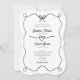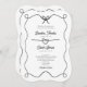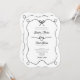 Na moda preto e branco convite para casamento com um arco de rabisco desenhado à mão, coração de corda romântico e um elegante roteiro de caligrafia moderna. Adicione seu código QR para RSVP online e site de casamento para obter mais informações. Uma mistura perfeita de encanto chic e romântico.