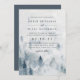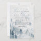 O convite para casamentos no inverno elegante apresenta um fundo de aquarela que representa uma paisagem de montanha nevada pontilhada com pinheiros em tons sombrios de azul e cinza. Personalize com os detalhes do seu casamento em letras suaves de preto. Uma bela escolha para casamentos no inverno elegantes em zonas montanhosas ou florestais.