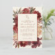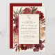 Este convite para o casamento floral Elegante Burgundy e vermelho apresenta os seus detalhes de casamento em letras modernas, definido num quadro oval de branco bege poeirento com flores aquáticas e folhagem botânica em tons de terra inspirados no deserto com tons de terra brilhantes, vermelhos, marrom e marfim com texto cor de cobre quente.toque de imagem vintage torna este convite floral antigo único.Um convite perfeito para o casamento vintage vermelho no verão, primavera e casamentos no inverno.