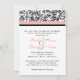 Este convite tradicional clássico apresenta padrões impressão design pretos florais úmidos e um toque de rosa pálido pincelado com um bar que atravessa o topo na frente. Este belo e elegante convite de casamento é excelente de casamentos com cores rosa e pretas, ou primavera ou casamento de verão. Este convite moderno também pode ser usado para convites para chás de casamento ou chás de panela ou até mesmo para renovação de festas de noivado ou votos, mudando o texto para o que você quer.