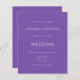 Convite para casamento roxo moderno e simples. A cor e o tipo da fonte podem ser alterados através do menu de edição. Você também pode alterar as cores do texto e do plano de fundo em ambos os lados, se desejar. Um valor para o alternativo menor de 4,5 x 5,6 polegadas é usado como padrão para a opção de semigloscópio, que é recomendada para convites e é de espessura semelhante a um cartão postal. A opção satin é muito mais fina.