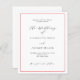 Um clássico e moderno fundo branco. Decorado com uma fina estrutura vermelha. Personalize e adicione seus nomes e detalhes. Voltar: adicione o URL do site de casamento ao código QR para obter detalhes e/ou RSVP 1 folha = 1 convite impresso de ponta a ponta.