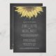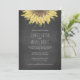 Este convite de casamento ao estilo do brasão de girassol rústico contém um girassol bonito, giz, na fronteira superior, na frente do cartão e na fronteira inferior, no verso, com tipografia mista personalizável, frente e verso - por katz_d_zynes | Parte da coleção de casamentos russos de painéis de girassol de katzdzynes > https://www.zazzle.com/collections/119897987782148015