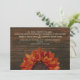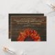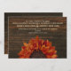 Um convite de casamento com a imagem de um girassol laranja a espreitar do fundo sobre um fundo de madeira marrom escuro. Personalize o texto com detalhes da sua ocasião.