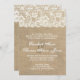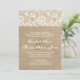 Este convite de casamento rústico apresenta um fundo escuro com um sotaque de aparência de rendas correndo pelo topo. Perfeito para um casamento com temas elegantes ou antigos.