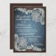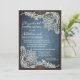 Este convite de casamento para chic denim, rendas e couro apresenta um fundo de couro com denim e delicado gráfico de renda de marfim. Há também telas de couro com rebites. Se você quer um país rústico se sentindo aliado a um olhar chique e elegante então isso certamente iria estabelecer o clima. Você pode personalizar isso facilmente on-line. ::ENVELOPES INCLUI: