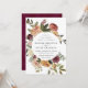 Os convites para casamentos florais elegantes ou quedas ou casamentos no inverno apresentam os seus detalhes rodeados por rosas de aquarelas, mães e verde em cores rústicas do outono, incluindo pêssego, marfim, blush, burgundy e verde. Um design moderno e elegante para casamentos quentes rústicos nos meses de outono ou inverno.