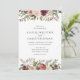 Os convites para casamentos florais elegantes ou quedas ou casamentos no inverno apresentam seus detalhes acentuados por bordas superiores e inferiores de rosas de aquarela, mães e verde em cores rústicas do outono, incluindo pêssego, marfim, escamas, burgundy e verde. Cartões invertidos para uma rede de cabo profunda com sub-tom.