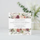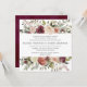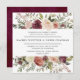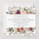 Nosso convite de casamento Rustic Bloom em um formato quadrado único enquadra seus detalhes de casamento com uma borda de cima e de baixo de flores pintadas de aquarela e folhagem em tons exuberantes de marsala, burgundy, blush e marfim. Uma escolha rústica, mas elegante para o outono e casamentos no inverno.