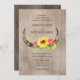 Convite para Casamento Rustic Bull Horns and Flowe