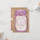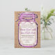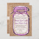 Este convite de casamento rusticado apresenta um design de jarro de mason com uma tonalidade roxa e um arco gêmeo ao seu redor, em cima de um design de juta de burlap impresso.  A pata e o fio são apenas designs impressos, não tecido de pá real ou corda gêmea.  Estes são perfeitos para qualquer casamento no condado russo, especialmente aqueles que usarão jares de mason e burlap em suas decorações de recepções de casamento e decorações de casamentos.  Estas são especialmente excelentes para noivas que estão usando roxo em suas cores de casamento.   Este modelo de convite de casamento pode ser personalizado com sua própria formulação de convite de casamento.  Se precisar adicionar mais linhas de texto ou alterar a cor ou o estilo da fonte, basta usar o botão "Personalizar".  Cartões RSVP de casamento disponíveis separadamente para seu Casamento Mason Jar: