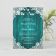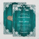 Convites de casamento Rústicos Teais inspirados por um rendas floral branco e luzes de cordas em um fundo de madeira. design de cartas perfeito para convidar seus convidados para sua festa de casamento rústica romântica.