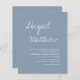 Orçamento Personalize este convite para Na moda de Boho Simples Elegante Dusty Azul e Branco com sua mensagem e detalhes com uma foto elegante no verso. Este convite minimalista inclui a tipografia da escrita à mão na moda com uma cor moderna para a celebração especial do dia do casamento.