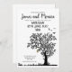 Um convite simples, mas elegante, que inclui uma árvore/aves e aves suspensas