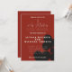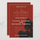 Um convite divertido e moderno para convidar seus convidados para seu evento em Las Vegas! Este convite apresenta gráficos gráficos gráficos gráficos pretos de cartas de jogar em negrito, uma renderização moderna do skyline de Las Vegas, além de fontes e texto totalmente personalizáveis em fundo vermelho de casino. No verso, você pode editar para seu próprio site de casamento ou informações sobre rsvp. Perfeito para um evento tradicional moderno ou clássico - este convite elegante é versátil!