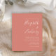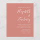 Este simples convite de casamento moderno apresenta um texto branco sobre um fundo de terracota. Adicione os nomes da noiva e do noivo na caligrafia de escrita manual do na moda e os detalhes na fonte sans serif. O reverso é uma sombra de terracota sólida.
