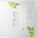 Nossa coleção ''Lemon Tree Destination Wedding'' apresenta ilustrações de limão e ramificação de árvore de aquarelas em conjunto com fontes elegantes facilmente personalizáveis nas quais todas as suas informações são escritas. Esta coleção tem algumas opções de cor de fundo; azul escuro, preto e branco. Veja na nossa loja mais itens correspondentes perfeitos para um casamento de verão ou destino.