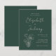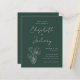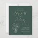 Este convite de casamento moderno apresenta um texto colorido de creme num fundo verde escuro. Um design floral de arte de linha aparece no canto inferior esquerdo. Adicione os nomes da noiva e do noivo no script de escrita manuscrita na moda creme e os detalhes na fonte sans serif.