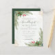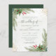 Belo convite para o casamento de barato, com ilustrações botânicas pintadas à mão de água, de verde de inverno, pinheiro e ramificações, cones e groselhas com brilho dourado. Escolha perfeita para casamentos temáticos de inverno ou Natal.