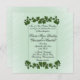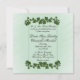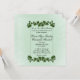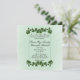 Um adorável convite verde de menta com bordas de folhas verdes. Coloque os primeiros nomes do casal de um lado com todas as informações do casamento e saudação da mãe e do pai da noiva. Por favor, verifique triplicamente todo o seu texto.