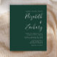 Este simples convite de casamento moderno apresenta um texto branco sobre um fundo verde esmeralda. Adicione os nomes da noiva e do noivo na caligrafia de escrita manual do na moda e os detalhes na fonte sans serif. O reverso é uma sombra de verde esmeralda sólido.