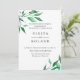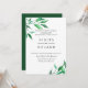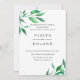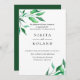 Verniz botânico de cor aquática moderno galhos com folhas em fundo branco e verde caçador, convite para casamento. Personalizar texto, estilo de fonte, cor e tamanho.