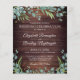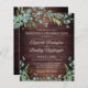 Convites russos para celebração de casamento impressos em papel leve, ideais para orçamentos conservadores e entrega de mão aos hóspedes. Lindo país, madeira escura com aquarela eucalipto e verde com sotaque dourado e tipografia elegante. Todo o texto é editável para mudar o texto para o ajustado das suas necessidades. Entre em contato com o designer por meio do Zazzle Chat ou makeitaboutyoustore@gmail.com se você quiser que este design seja modificado, em outro produto ou em itens de coordenação.