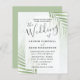 Seus hóspedes vão adorar este elegante e sofisticado design tropical. Apresenta uma grande folhagem tropical em aquarela em um fundo aquoso verde de cor aquosa macia. A caligrafia moderna é definida dentro de uma camada transparente em forma de arco. Fácil de editar com seus detalhes exclusivos.