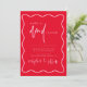 Este é um convite ousado e moderno para casamento, com uma bela fonte caligráfica e tons de rosa e vermelho. Todas as cores são editáveis. // Para designs correspondentes, procure "DELILAH" na certeira loja Nicole Zazzle. * Se você gosta deste design, mas não o vê disponível para algo que você está procurando, por favor, entre em contato comigo a qualquer momento :)