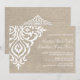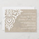 Este convite de casamento rústico mostra uma pincelada de fundo com uma design de damasco branco desbotado. A mistura perfeita de materiais rústicos com a elegância de damask detalhando. Perfeito para o casamento do celeiro, casamento ao ar livre, casamento no campo, casamento rústico, casamento vintage ou casamento elegante.