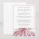 Este convite de casamento apresenta um belo esboço de um vinhedo e edifício.