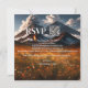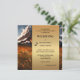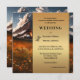 Um convite único para o casamento no outono com uma cena de fantasia com flores coloridas e um vulcão ativo. Um painel de ouro elegante é usado atrás dos textos. No verso há um código QR opcional com informações de RSVP. (você pode excluir facilmente se não precisar). Bonita para um casal aventureiro.