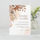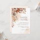 Convide seus entes queridos para comemorar seu dia especial com este convite de casamento encantador. Apresentando delicadas flores de aquarela em tons quentes de outono, este design captura perfeitamente a elegância rústica e a beleza natural da estação. O layout simples, porém sofisticado, permite que seus detalhes de casamento brilhem, enquanto as texturas sutis e tons sutis criam uma atmosfera quente e convidativa.