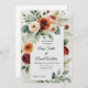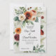 Celebre seu dia especial com este maravilhoso convite de casamento outono rústico apresentando um buquê de florais de aquarelas ricas, laranja queimada, rosa-pincelado e creme, acentuado com folhagem verde-luxuosa e detalhes botânicos delicados. O design oferece um generoso espaço de vazio para seu texto de casamento personalizado, fazer perfeito para comemorações do outono, temas bóquicos ou casamentos elegantes no campo. Impresso com detalhes de alta qualidade, este convite dá um tom caloroso e romântico para o seu grande dia.
