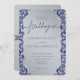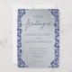 Este convite para o casamento apresenta uma combinação refinada de tons azuis profundos aliados a detalhes de prata brilhante. A intrincada moldura de amortecedor de prata melhora a sofisticação do design, enquanto o painel central suave destaca elegantemente os nomes do casal. O contraste entre a prata azul legal e a prata metálica cria uma estética moderna, mas eterno, perfeita para casamentos noturnos, comemorações de inverno, ou qualquer evento que busque um toque de luxo e graça.