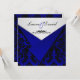 Este convite para casamentos tema damasco, azul e preto, com aspecto dramático e formal, tem a aparência de dobras de frente que acrescentam à elegância. Isso adicionaria um toque de na moda ao seu casamento, ou outro evento especial. O texto e o papel são todos personalizáveis. Se você precisar de outros itens correspondentes, envie um email para niteowlstudio@gmail.com. Os itens correspondentes existentes são mostrados abaixo.
