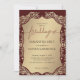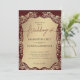 Este convite para o casamento exumenta riqueza e sofisticação com seu fundo de burgundy profundo e sua estrutura de damasco de ouro ornamentado. A cor arrojada cria um contraste dramático contra os sotaques luminosos de ouro, fazer que o design se destaca com elegância real. O painel bege central oferece um espaço refinado para os nomes do casal e os detalhes do casamento, combinando tradição com luxo. Perfeito para casamentos formais, comemorações noturnas, e grandes ocasiões, esta design traz a opulência eterno a qualquer evento.