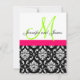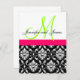 Lindo logotipo de casamento monograma com iniciais de monograma verde e nomes pretos em uma fonte elegante, listras cor-de-rosa-quente ou banda acrescentam a esta adorável cor damasco branca e negra floral para criar um convite de casamento único que seus hóspedes irão felicitar. Essa design é simples, mas elegante e, por usar sua inicial de monograma, será de um tipo. Design do Convite de Casamento por Elke Clarke ©2010. Gráficos licenciados. Personalize com suas informações e cores de casamento. Precisa de ajuda para criar um pacote de casamento com itens correspondentes, como cartões de receptáculo de recepção RSVP anne, entre em contato com luxuryweddinginvitations@gmail.com