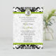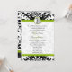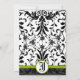 Vintage Cores damasco Florais Modernas de Preto e Branco com Convites de Casamento de Cortes Verdes da Apple. Perfeito para o Barroco Rococó, Renascença medieval, Art Deco Art Nouveau, Roaring 20s Gatsby, Casamentos vitorianos ou Themes de Casamento Farmário Elegante.
