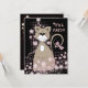 Gato bonito com margarida ou convite de festa de aniversário