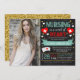 Adorável convite para a formatura de enfermeira com uma aparência falsa no quadro de discussão e gráficos médicos bonitos! Um excelente convida a felicitar a nova enfermeira por todo o seu trabalho de duro na escola de enfermagem! Apresenta um fundo de quadro chalkboard falso e gráficos médicos bonitos com destaque falso de folha de ouro e brilho!